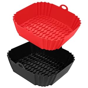 VintFun® Air Fryer Silicone Pot Rectangular for Ninja Foodi Dual DZ201 DZ401, 4Pcs, Reusable Silicone Airfryer Liner Replacement Baking Tray Basket Insert, Non-stick, Easy Cleaning, Food Safe, Black