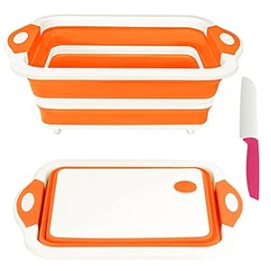 Rottogoon Collapsible Cutting Board, Foldable Chopping Board with Colander, Multifunctional Kitchen Vegetable Washing Basket Silicone Dish Tub for BBQ Prep/Picnic/Camping(Orange)