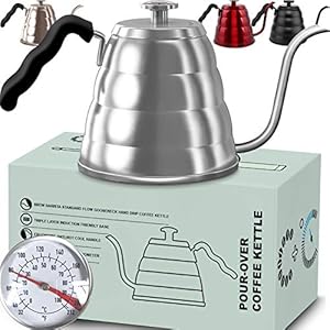 Pour Over Coffee Kettle with Thermometer for Exact Temperature 40 fl oz – Premium Stainless Steel Gooseneck Tea Kettle for Drip Coffee, French Press and Tea – Works on Stove and Any Heat Source