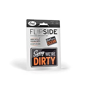 Genuine Fred FLIPSIDE Dishwasher Sign, Double-Sided, Works on all ALL Dishwashers, Self-Adhesive Magnet Included, Durable & Water Resistant, Fun Kitchen Gadget for Families and Roommates, 2.5″ x 3.5″