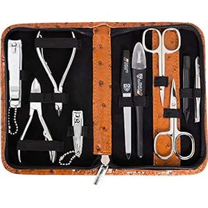 3 Swords Germany – brand quality 10 piece manicure pedicure grooming kit set for professional finger & toe nail care scissors clipper fashion leather case in gift box, Made by 3 Swords (00286)