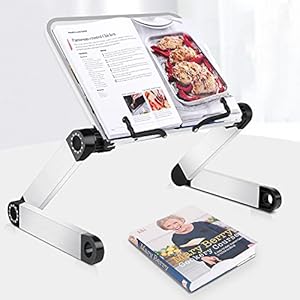 Book Stand for Reading, Hands Free Book Holder for Reading in Bed, Recipe Book Stand with Page Paper Clips, Adjustable Lightweight Book Stand for Kitchen, Textbook Stand, Laptop, Tablet