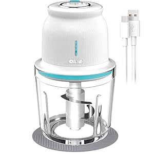 Electric Cordless Food Chopper, Olrid Mini Food Processor 2.5-Cup, Meat Chopper, for Chop Onion Garlic Vegetable Nut, Baby Food, 2-Speed Adjustable, BPA Free Glass Bowl – White