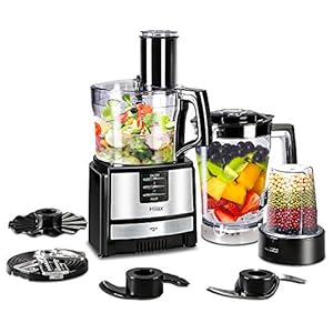Food Processor Blender Combo, 8 in 1 Food Processor Smoothies Blender Chopper Coffee Grinder Mixer, 2 Speed & Pulse Function for Blending Chopping Grinding Slicing Kneading Grating Emulsifying Juicing
