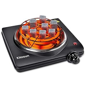 Single Hot Plate Charcoal Coal Burner Electric Stove Portable Fast Heating with Adjustable Temperature Control & Stainless Steel Grill for Cooking Camping (1000W)