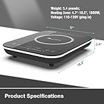 Specification: 12″ Induction Cooktop, SINGLEHOMIE 1800W Portable 12 inch Cooker Countertop Burner, Touch Sensor LED Display Plug-in 110-120V
