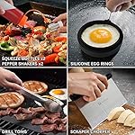 Specification: 17 Pcs Griddle Accessories Kit for Blackstone and Camp Chef, Commercial Grade Flat Top Grill Accessories with Metal Spatula, Scraper, Egg Rings, Cleaning Kit and Carry Bag for Outdoor Bbq, Camping