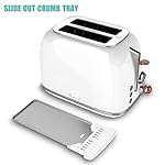 Specification: Toaster 2 slice,Retro Stainless Steel Toaster with 6 Settings, 1.5 In Extra Wide Slots, Bagel/Defrost/Cancel Function, Removable Crumb Tray (White)