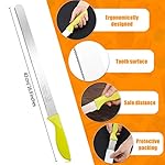 Material: the cake levelers are made of stainless steel, one of the levelers has been designed with non-slip plastic handle for better and comfortable grip, anti-rust and pointed wire for cutting; The cake knife is made of stainless steel with plastic handle, fine polished and serrated edge, cut cake into desired size pieces easily without hurting your hand