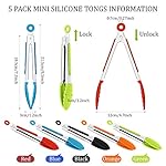 Specification: Mudder 7 Inch Mini Serving Kitchen Tongs with Silicone Tips, Stainless Steel Tongs for Salad, Grilling, Frying and Cooking, 5 Pieces