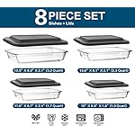 Specification: 8-Piece Deep Glass Baking Dish Set with Plastic lids,Rectangular Glass Bakeware Set with Lids, Baking Pans for Lasagna, Leftovers, Cooking, Kitchen, Freezer-to-Oven and Dishwasher, Gray
