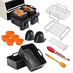 Air Fryer Accessories, Set of 10 for Ninja Dual AF300UK AF400UK & Tower T17088, Reusable Silicone Air Fryer Liners,Air Fryer Rack with Skewers,Silicone Gloves,Food Clip,Cupcake Mold,Oil Brush