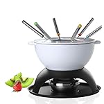Specification: Artestia 11-Piece Cast Iron Fondue Set with Adjustable Burner 6 Colored Forks, 5-Cup White Cheese Fondue Pot for Chocolate, Meat, 4-6 Person