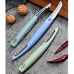 ⭐[2 in 1 Sharp Peeler]:Peeler has a super sharp wide 120° rotary knife, which can peel easily, and the slightly wide blade design will not be blocked by the peel.and There is a small knife at the end, you can apply a variety of kitchen work, easy to remove vegetable stems and slicer.