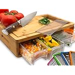 Bamboo Cutting Board with containers and Lids. Includes 4 graters for cheese as Bonus.