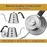 Specification: Barista Warrior Gooseneck Kettle for Pour Over Coffee and Tea with Thermometer for Exact Temperature, Precision Pour Drip Spout, Stainless Steel, Compatible with all Stove Tops (1.2 Liter, 40 fl oz)
