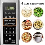 Pre-programmed buttons for popcorn, potato, pizza, frozen vegetable, beverage and dinner plate