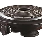 Give your kitchen some added flexibility with this electric 1,000-Watt single burner (Black) from Brentwood. It is perfect when you’re entertaining large groups, compact when you’re making lunch at the office and durable when you’re camping at the beach. It can be used for cooking and serving with an adjustable thermostat and the convenience of the easy-to-clean surface.