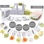 STRONGEST YET & QUALITY ABOVE ALL: No expense was spared in making this the best quality spiralizer | 10 PREMIUM BLADES: Made of Japanese 420J2 stainless steel to ensure they will always stay ultra sharp | SUPERSIZED FOOLPROOF SUCTION PAD: Stays firmly locked to countertops for HOURS | QUALITY PLASTIC PARTS: Made of premium quality reinforced ABS, strong enough to withstand even the hardest veggies such as butternut squash, sweet potatoes, beets | Designed to be dead easy to use, clean & store.