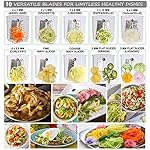 GET THE MOST FOR YOUR MONEY: ✅ 10 blades to make a wide variety of cuts e.g. angel-hair noodle, spaghetti, tagliatelle, linguine, papardelle, wide ribbons, curly fries, fine ridged pasta, crinkle chips, lasagne ✅ Catch container & keep-fresh lid – no mess & keep veggie noodles fresh for longer ✅ Supersized, foolproof suction pad with easy ON/OFF lever for steadfast operation ✅ Extra caddy for safe blade storage – no more loose blades ✅ Innovative design to store it all neatly as a single unit!