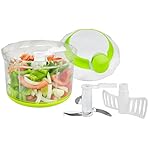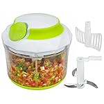 ✅ POWERFUL & VERSATILE: Powerful handheld herb, vegetable, food chopper / mixer / blender. Perfect for slicing and mixing vegetable/fruit salads, cutting various foods for baby, chopping nuts, herbs, veggies, pesto, hummus, salsa, guacamole, meat for meatloaf, ice, and more. It can be used equally well as a vegetable chopper, salad chopper, onion chopper (no tears), garlic chopper, herb chopper or as a general-purpose manual food chopper. No electricity required.