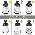 Multifunctional 6 essential grating and cutting surfaces, includes fine, coarse, crinkle slicer and zester; Perfect use of grating for parmesan cheese, garlic, ginger, lemon, potato, zucchini, carrot, spice, nutmeg, etc.
