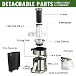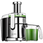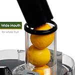 ?3 INCH WIDE FEED CHUTE DESIGN – easy cleaning – fit whole fruits & vegetables, without slicing and chopping, completely liberate your Hands, reducing prep time to get the delicious juice. Except for the motor base, all parts of the electric juice Extractor with big mouth are dishwasher safe. Simplify your life.