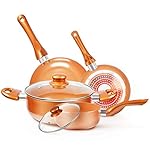Specification: Cookware-Set Nonstick Pots and Pans-Set Copper Pan – KUTIME 6pcs Cookware Set Non-stick Frying Pan Ceramic Coating Stockpot, Cooking Pot, Copper Aluminum Pan with Lid, Gas Induction Compatible