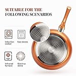 【Anti Warping & Heat Insulation Handles】 -KUTIME Copper Cookware Set has light and durable bakelite handles make aluminum cookware fights corrosion, warping and rust to ensure healthy food and long-term use