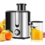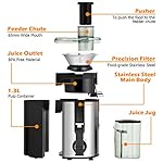 ?【Wide Feed Chute & High Juice Yield】Juicer machines with the 2.5inch wide feed chute can easily receive large pieces of fruits and vegetables, greatly reducing the preparation time. Efficient motor and sharp chopping blades can quickly extract delicious and nutritious juice. In addition, the juicer is also equipped with a 1300ml pulp collector and a 350ml juice cup for convenient use.
