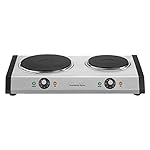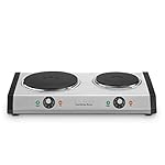 The Cuisinart Cast-Iron Double Burner offers the ultimate in cooking flexibility, adding two extra burners to any kitchen, or any place without a kitchen! Its 1800 watts of power – a 1300-watt large plate and a 500-watt small plate – heat up quickly and retain high heat throughout cooking. The “coil-less” cast iron plates are durable and wipe clean in a snap. Premium brushed stainless steel housing looks stylish in any setting. A separate 6-setting temperature control for each burner offers complete versatility – the lower settings keep foods warm, while the higher settings cook an entire meal. It’s ideal for entertaining and holidays when cooking for a crowd, yet it’s compact and portable enough for small spaces like dorm rooms, boats, patios or RVs. This is a versatile tool that’s a great addition to any kitchen – big or small! Features: Brushed stainless steel housing|1800 watts of power: 1300-watt large plate and 500-watt small plate for quick heat-up|Independent adjustable thermostats with On and Ready indicator lights|Heavy-duty cast iron plates|Nonslip rubber feet|Limited One Year Product Warranty