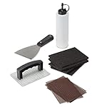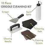 TEN ESSENTIAL TOOLS FOR GRIDDLE CLEANING: Sturdy Scraper, cleaning handle, four cleaning pads, three cleaning screens, and squirt bottle provides everything needed for a deep clean.