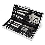 TWENTY ESSENTIAL TOOLS FOR GRILLING: Chef’s spatula, grill tongs, digital temperature fork, silicone basting brush, four pairs of corn holders, five skewers, cleaning brush with extra brush head are all contained in a durable aluminum carrying case – perfect for the on-the-go or at home.