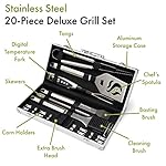 The Cuisinart 20 Piece Deluxe Grill Set provides you with all the essential grilling tools and also includes a bonus Digital Temperature Fork! And this 20 piece set conveniently comes in a stylish and durable aluminum carrying case. These grilling tools will be your best friend at the grill and the digital temperature fork will take the guesswork out of grilling. You’ll even be able to grill at night since the temperature fork has an integrated LED light that shines brightly down on your food. And with a backlight display, timer function, and an alarm that alerts you when food is done, you will have all of your bases covered. Professional stainless steel design and Cuisinart quality make this 20 piece tool set the perfect set for anyone, whether he or she is an amateur griller, an average seasonal griller, or a professional chef.
