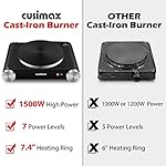 Specification: CUSIMAX Electric Hot Plate for Cooking Portable Single Burner 1500W Cast Iron hot plates Heat-up in Seconds Adjustable Temperature Control Stainless Steel Non-Slip Rubber Feet Upgraded Version B101