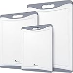 Specification: Cutting Boards for Kitchen, Extra Large Plastic Cutting Board Dishwasher Chopping Board Set of 3 with Juice Grooves, Easy Grip Handle, Grey, Kikcoin