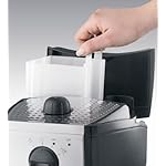 Prepare creamy froth with ease Simple to clean thanks to a removable 35-ounce water tank Enjoy delicious espresso made your way with the DeLonghi pump espresso and cappuccino maker. You can choose to brew ground espresso or E.S.E pods with the unique patented dual filter holder. The choice is yours, making your espresso truly made to order. You can enjoy espresso or cappuccino at the perfect temperature with two separate thermostats. If you prefer cappuccino you’ll enjoy using the easy-to-use swivel jet frother, which makes perfect drinks every time. Other highlights include self-priming operation to eliminate pesky start-up preparation, removable water tank and drip tray and a durable, high-quality stainless steel boiler to ensure many years of delicious espresso. Authentic Italian espresso, fast Swivel Jet Frother Easily prepare latte and cappuccino with the swivel jet frother. Create a rich, creamy froth for perfect drinks every time. Patented Dual Function Filter Holder With the EC155’s dual function filter holder, you can use ground coffee as normal, or convenient coffee pods for faster preparation. It makes espresso and cappuccino preparation quick and easy. Self-Priming Operation Eliminate annoying start-up preparation with the EC155’s self-priming operation. Get to your coffee faster, with less waiting around for the element and boiler to reach the correct temperature. Easy to Clean The EC155 is simple to clean with a removable 35-ounce water tank with indicator light, and a removable drip tray. It’s easy to disassemble, clean, and reassemble to get back to making drinks quickly. Technical Specifications Input Power: 1100 watts Boiler: Stainless Steel Pump Pressure: 15-bar Cup Warmer: Yes Dimensions(l x w x h inches ):12.2 x 19.3 x 15.0 .