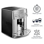 Capable of preparing espresso, coffee, cappuccino, latte drinks, and more, this super-automatic machine features a unique beans-to-brew system that grinds coffee beans right before brewing for exceptionally aromatic espresso. The appliance comes equipped with two stainless-steel boilers that provide excellent heat distribution, as well as an instant reheat function, which keeps the machine at an ideal temperature, no matter how long the interval between cups. In addition, its quiet burr grinder automatically grinds beans and can be set to a specific grinding level, but the unit can also be used with ground coffee if preferred. The unit’s front panel offers easily accessible controls for the on/off switch and cappuccino system, as well as for adjusting the quantity of water and coffee to suit individual tastes, from long or short to weak or strong. Its patented cappuccino system rotates 180 degrees to allow for any size milk container, plus the coffee spigot height can be adjusted to accommodate all different cup sizes from a classic espresso cup to a tall mug. Even more, the units exclusive cup tray keeps cups warm before use, and its three-hour automatic shutoff provides added safety. Other highlights include a 60-ounce removable water tank, a handy water-level indicator, a 7-ounce bean container, an electronic steam and coffee thermostat, rinse and decalcification auto programs, and a removable drip tray for easy cleanup. Made in Italy. From the Manufacturer Capable of preparing espresso, coffee, cappuccino, latte drinks, and more, this super-automatic machine features a unique beans-to-brew system that grinds coffee beans right before brewing for exceptionally aromatic espresso. The machine makes espresso at a consistently ideal temperature because of its new stainless-steel double boiler, which provides excellent heat distribution, as well as its instant reheat function, which keeps the machine at an ideal temperature, no matter how long the interval between cups. Its space-saving, integrated quieter burr grinder automatically grinds beans and can be set to a specific grinding level, but the unit can also be used with ground coffee if preferred. Its 60-ounce removable water reservoir and 7-ounce bean container allow for conveniently filling the water tank and emptying coffee grounds. The unit’s front panel offers easily accessible controls for the on/off switch and cappuccino system, as well as for adjusting the quantity of water and coffee to suit individual tastes, from long or short to weak or strong. The machine’s patented cappuccino system rotates 180 degrees to allow for any size milk container, while its coffee spigot height can be adjusted to allow for all different cup sizes from a classic espresso cup to a tall mug. The unit features an exclusive cup tray to keeps cups warm before use, as well as a three-hour automatic shutoff for safety. For added convenience the unit comes with a water-level indicator, an electronic steam and coffee thermostat, rinse and decalcification auto programs, and a removable drip tray for easy cleanup. Brewing Unit: The “Heart” of Magnificent The Magnifica features the smallest removable brewing system available on the market. Because DeLonghis patented boiler is so compact, the excellent heat distribution guarantees a perfect espresso at the ideal temperature every time. And, thanks to the removable boiler, cleaning the inside of the machine is easy. Even areas normally difficult to reach can be easily cleaned and without the use of harsh detergents. And because regular maintenance helps prolong the life of the machine, DeLonghis reliability is second to none.Beans-to-Brew System One of the secrets to making a high-quality espresso is using freshly ground coffee beans. Because of the beans-to-brew system, the Magnifica offers you coffee that has a delicious aroma. The coffee is freshly ground and no traces are left in the machine. Magnifica is the only super-automatic machine that delivers the freshest results. Features Compact and High Performance: Because DeLonghis new patented boiler is so compact, the excellent heat distribution guarantees a perfect espresso at the ideal temperature every time. Timeless Reliability: Thanks to the stainless-steel removable double boiler, the inside can be cleaned easily. Regular cleaning of the machine is essential for maintaining the best flavor possible and for minimizing the need for service. A Perfect Aroma, Guaranteed: The beans-to-brew system guarantees an espresso with a delicious aroma as the coffee is freshly ground. No traces of stale grounds are left in the machine. Instant Reheat: This special function heats the core of Magnifica, ensuring the machine is always at the ideal temperature for espresso, no matter how long the interval between cups. Removable Water Tank and Bean Container: Magnifica knows that the counter space in your kitchen is always at a premium. Magnifica is the only super-automatic machine that allows you to fill the water tank and empty the coffee grounds without moving the machine. All of the controls are at the front of the machine, from the on/off switch to the cappuccino system. Integrated Burr Grinder: A space-saver container for beans is fully integrated into the Magnifica. You can set the grinding level to customize your espresso. Magnifica can also be used with ground coffee. DeLonghi recommends the use of illycaffe for the best tasting espresso. Rich, smooth, balanced, and never bitter, illy provides the same consistent distinctive taste cup after cup. Coffee Spigots: Magnificas coffee spigot height can be adjusted to allow for all different cup sizes from a classic espresso cup to a tall mug. Cappuccino System: The patented cappuccino system rotates 180 degrees to allow for any size milk container. Cup Tray: Magnificas exclusive cup tray, similar to those found in cafs, keeps cups warm before use. Front Panel: Magnifica allows you to customize your coffee by 