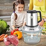 Specification: Electric Food Chopper Processor For Meat,Vegetables,Fruit,Salad,Pepper,Garlic,Onion And Nuts.8 Cups(2L) Glass Bowl,350W with Double Layers 4pcs Blades. (Glass)