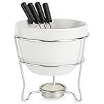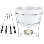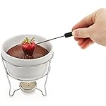 ? SMART AND SOPHISTICATED FONDUE SET – Our innovative design features a pure white ceramic fondue bowl that sits atop a smart metal tealight warming stand. The included 4 stainless-steel fondue forks are fantastic for dipping any type of food. A lovely little tea light holder sits directly below the chocolate melting pot set. (Does not include serving bowls)