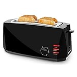 Elite Gourmet ECT4829B Long Slot 4 Slice Toaster, 6 Toast Settings Toaster Defrost, Reheat, Cancel Functions, Slide Out Crumb Tray, Extra Wide Slots for Bagels Waffles, Black