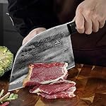 【Premium Material & Super Sharp Blade】The blade of our meat cleaver is made of 5Cr15MoV high carbon steel with high quality, high hardness and wear resistant, rust-proof. Hand polished edge at 16 degrees per side have an extraordinary performance in edge-retention and a longer service life, which help you cut smoothly with ease. It’s processed with multi-channel composite for fine grinding which maintain the sharpness of the kitchen knife for a long time with incredible robustness and quality.