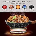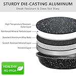 ✅【Fast & Even Heat】- Reinforced die-casting aluminum body and three-layer bottom, break resistant & does not warp. 4.5 mm thicken bottom provides a stable heat distribution, rapidly heating up, saves time and energy, 2 mm thicken aluminum body can ensure uniform heat dissipation and prevent hot spots. Suitable for use on: Induction, gas, ceramic, electric, halogen.