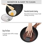 ✅【See-through Lids & Heat Insulation Handles】- ESLITE LIFE nonstick cookware set equipped with see-through tempered glass lids with vent holes that allow steam to escape, and you can know the cooking status clearly. This pans set features heat-resistant bakelite handles and easy-to-grasp knobs which ensures comfortable & safe cooking.
