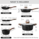 ✅【ESLITE LIFE Kitchen Pans and Pots Set Includes】- (1)9.5 inch grill pan, (2)1.5 quart saucepan with lid, (3)9.5 inch frying pan, (4)5 quart soup pot with lid, (5)11 inch saute pan with lid. Premium toxin-free, 100% PFOA, LEAD, CADMIUM free, meeting your various demands of everyday cooking for you & your family.