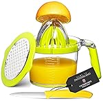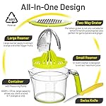 Specification: Eurolux 4-in1 Manual Citrus Juicer with Swiss Made Fruit Knife – Multifunction Orange Lemon Squeezer, Hand Juice Extractor with Clear Measuring Cup, 2-Way Grater, Egg Separator, and Silicone Handle