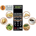 6 one-touch cooking functions for popcorn, potato, pizza, frozen vegetable, Beverage, or a dinner plate