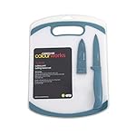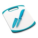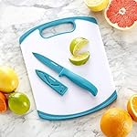 Specification: Farberware 2-Piece Paring Knife and Cutting Board Set, 3.5-Inch Paring Knife with Resin Coating and Custom-Fit Blade Cover and Non-Slip Plastic Chopping Board, Dishwasher-Safe Set, White/Blue