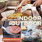 PREMIUM SPATULA SET – Made of heavy duty 304 stainless steel feature rust resistant and solid construction for long time use without deformation or broken.Food grade plastic heat-resistant handle with hanging hole ensures non slip,easy storage and safer BBQ experience.All tools are dishwasher-safe for easy care