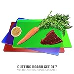 Specification: Fotouzy Plastic Cutting Boards for Kitchen, Flexible Cutting Mats Set of 7, Cutting Board Mats, BPA-Free, Non-Porous, Dishwasher Safe, 7 Translucent Colors